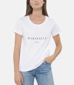 Tee-shirt Lulli Marseille Col Rond Coton Bio Blanc, Collaboration Jeanne Vouland X Lulli