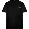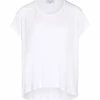 Top à manches courtes en coton blanc. Col rond. Bord de manche ondulé. Coupe droite. Base droite ondulée.
