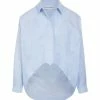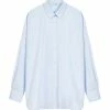 Chemise en coton à rayures bleu clair. Logo “Ami de cœur” brodé en rouge sur la poitrine. Col chemisier. Fermeture boutonnée. Manches longues boutonnées. Coupe droite. Base arrondie.