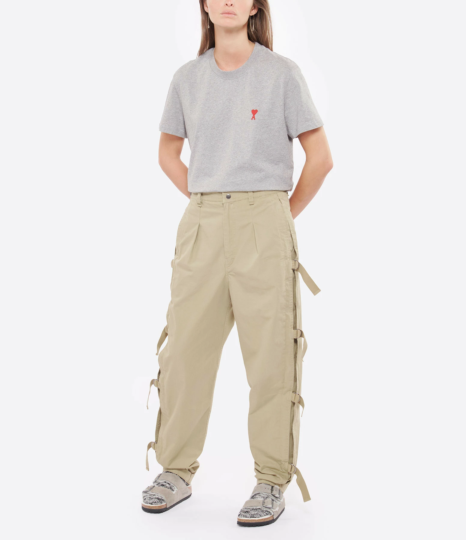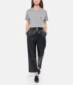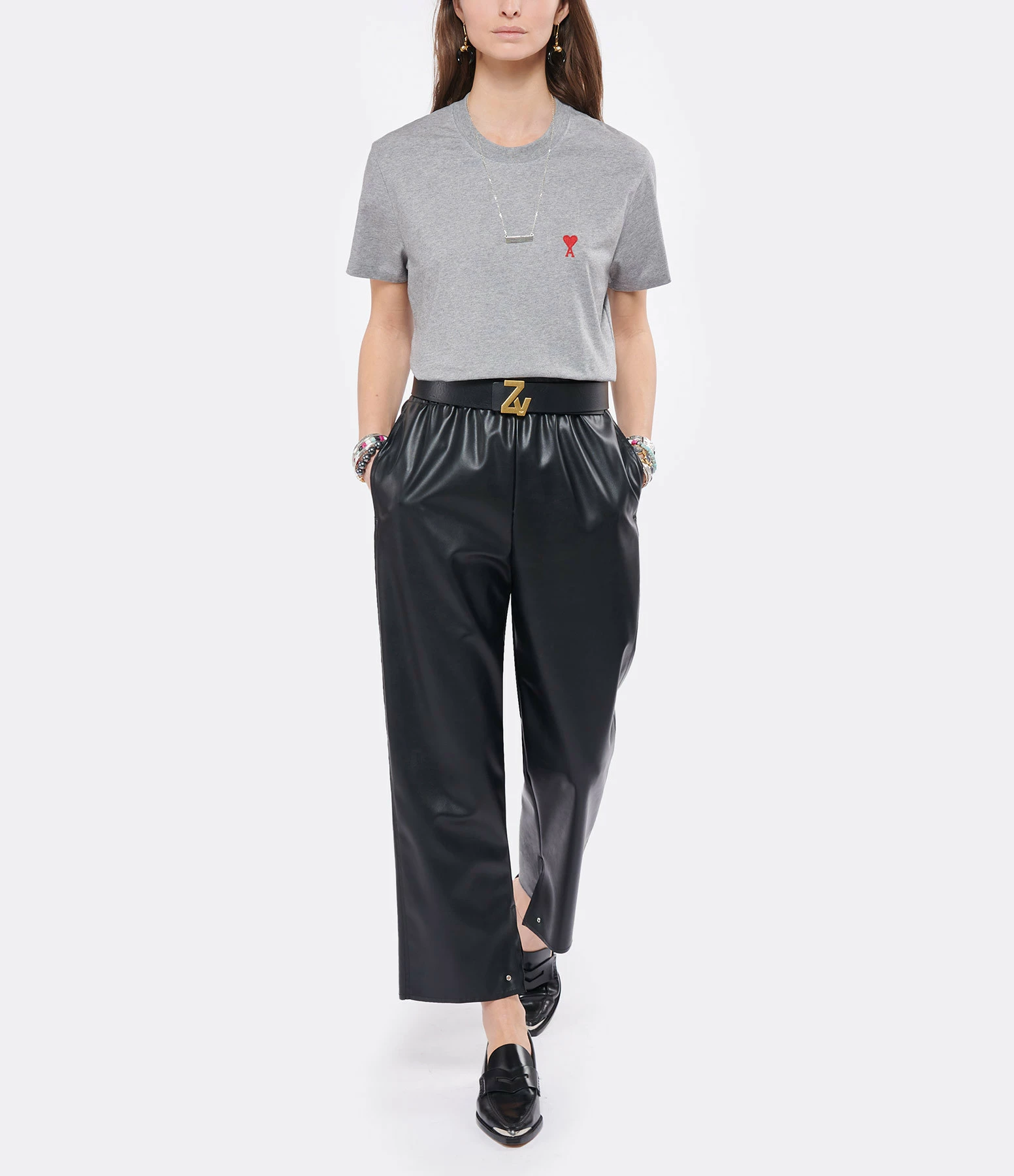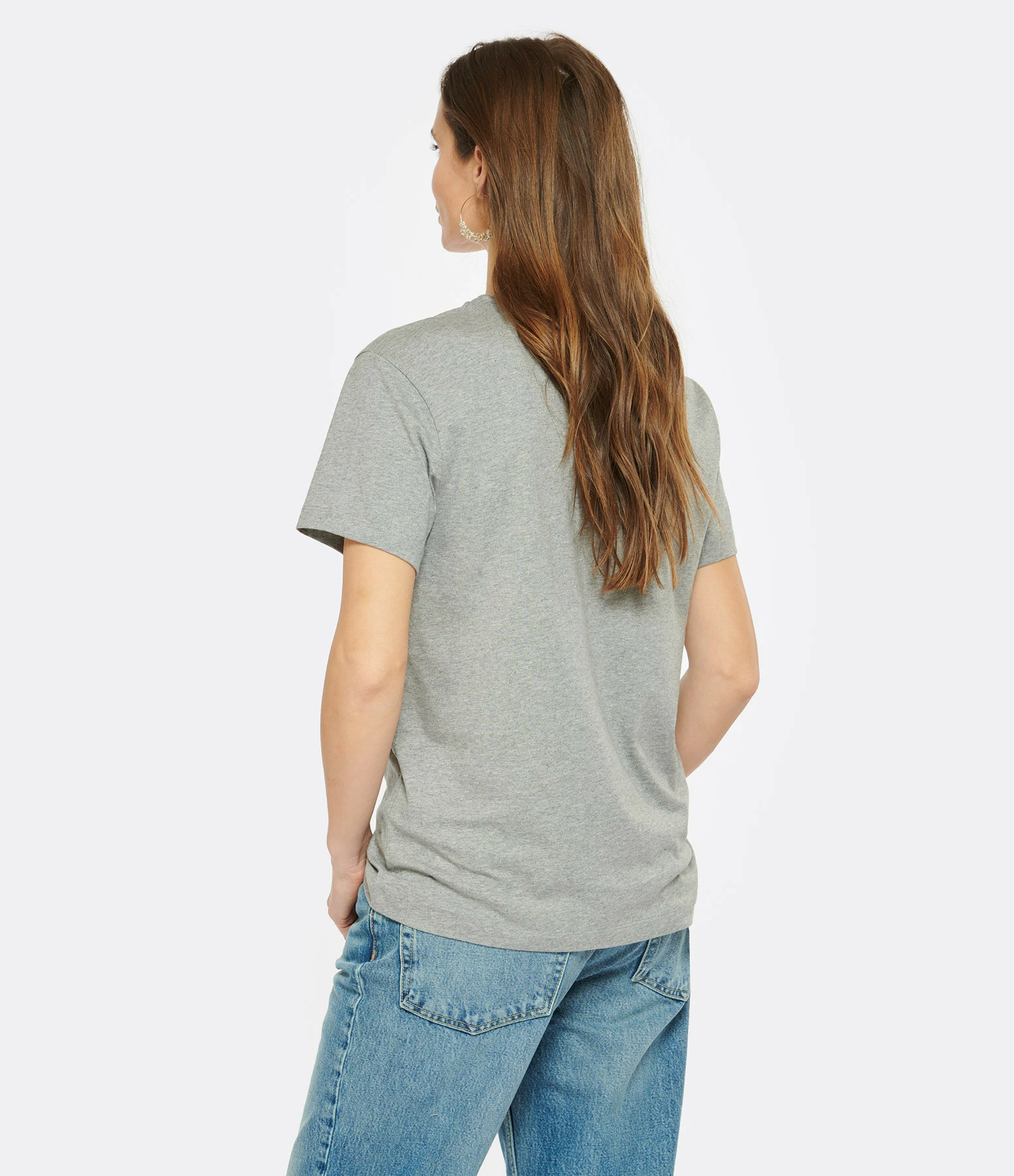Tee-shirt unisexe en coton gris chiné avec logo rouge “Ami de cœur” brodé sur la poitrine. Col rond côtelé. Manches courtes. Coupe droite. Base droite.
