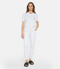 Tee-shirt unisexe en coton blanc avec logo rouge “Ami de cœur” brodé sur la poitrine. Col rond côtelé. Manches courtes. Coupe droite. Base droite.