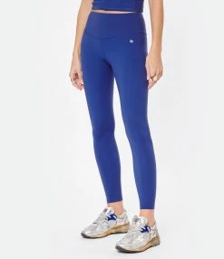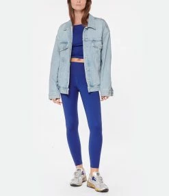 Legging bleu avec logo Anine Bing à l’avant. Taille élastiquée.