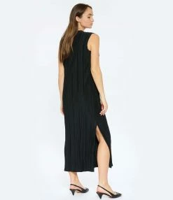Robe longue plissée noire. Col rond. Fentes latérales. Coupe droite. Base droite.