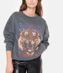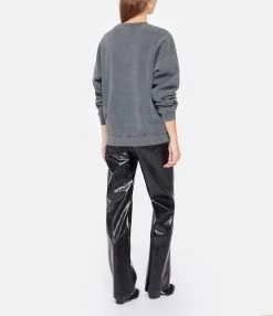 Sweatshirt en coton gris délavé sérigraphié. Col rond. Manches longues. Inscriptions multicolores à l’avant. Coupe droite. Base droite. Non doublé.