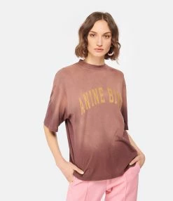 Tee-shirt en coton molletonné marron dégradé avec “Anine Bing” flocké en marron sur le devant. Col rond côtelé. Manches courtes. Coupe droite. Base droite côtelée.