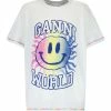 Tee-shirt en coton gris délavé sérigraphié. Col rond. Manches courtes. Inscriptions gris clair à l’avant. Coupe droite. Base droite. Non doublé.