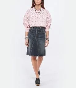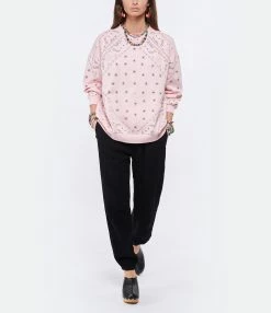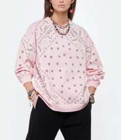 Sweatshirt en coton rose à motif bandana. Col arrondi. Manches longues. Poche sur l’avant. Coupe ample. Base droite.