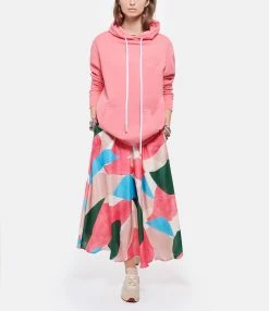 Sweatshirt à capuche en coton rose. Inscription “Autry Action Wear” floqués sur le devant côté cœur. Manches longues. Base et poignets resserrés par bords côtes. Coupe droite, base droite.