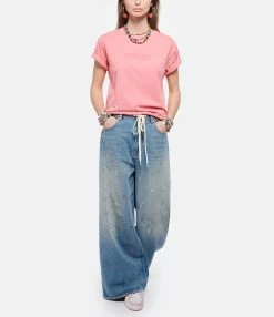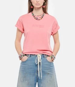 Tee-shirt en coton rose. Col rond. Manches courtes. Inscription ” AUTRY Action Wear”. Coupe droite. Base droite.