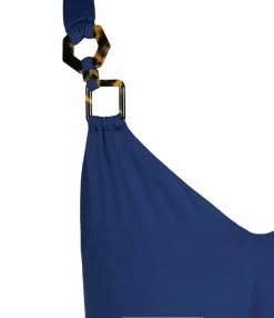 Robe longue bleu nuit fluide. Coupe droite. Base droite. Décolleté en V à l’avant et à l’arrière. Bretelles semi-épaisses avec détails anneaux effet écaille de tortue.