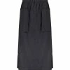 Jupe mi-longue à imprimé multicolore dans les tons roses. Taille haute élastiquée. Fentes sur le devant au bas de la jupe. Volants sur le côté. Coupe ample. Base asymétrique.