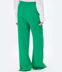 Pantalon fluide vert. Taille haute élastiquée. Deux poches à l’avant. Coupe droite. Base droite.
