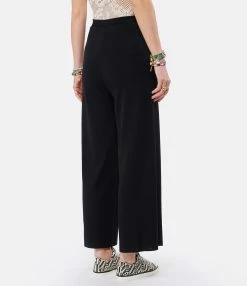 Pantalon à jambe large en jersey côtelé. Taille élastiquée. Poches latérales. Jambe droite.