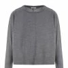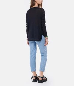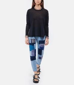 Pull en lin bleu marine. Col rond. Manches longues. Coupe droite. Base droite.