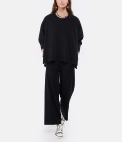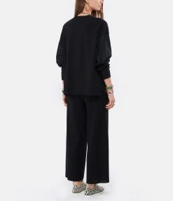Sweatshirt en coton effet bi-matière. Col arrondie. Manches longues élastiquées effet chemise. Fentes latérales. Coupe droite. Plus long à l’arrière.