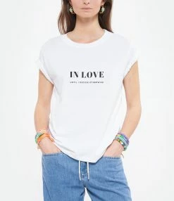 Tee-shirt en coton blanc. Inscription noire “IN LOVE, until i decide otherwise” floquée à l’avant. Col rond. Manches courtes. Coupe droite. Base droite.