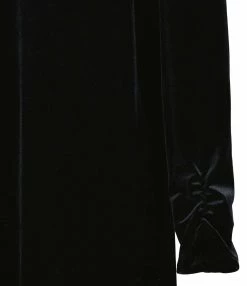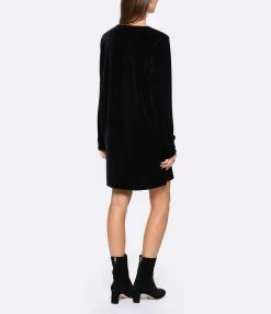Robe courte en velours noir. Décolleté carré. Manches longues avec poignets froncés. Coupe droite. Base droite. Non doublée.