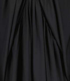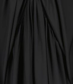 Robe courte en velours noir. Décolleté carré. Manches longues avec poignets froncés. Coupe droite. Base droite. Non doublée.