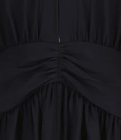 Robe courte en coton noir.Col en V. Épaules froncées. Manches longues bouffantes. Coupe oversized. Base droite. Doublée.