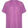 Chemise oversized en coton rose. Col chemisier. Fermeture par boutons sur le devant et derrière. Manches longues. Une poche plaquée poitrine. Coupe oversized. Base droite.