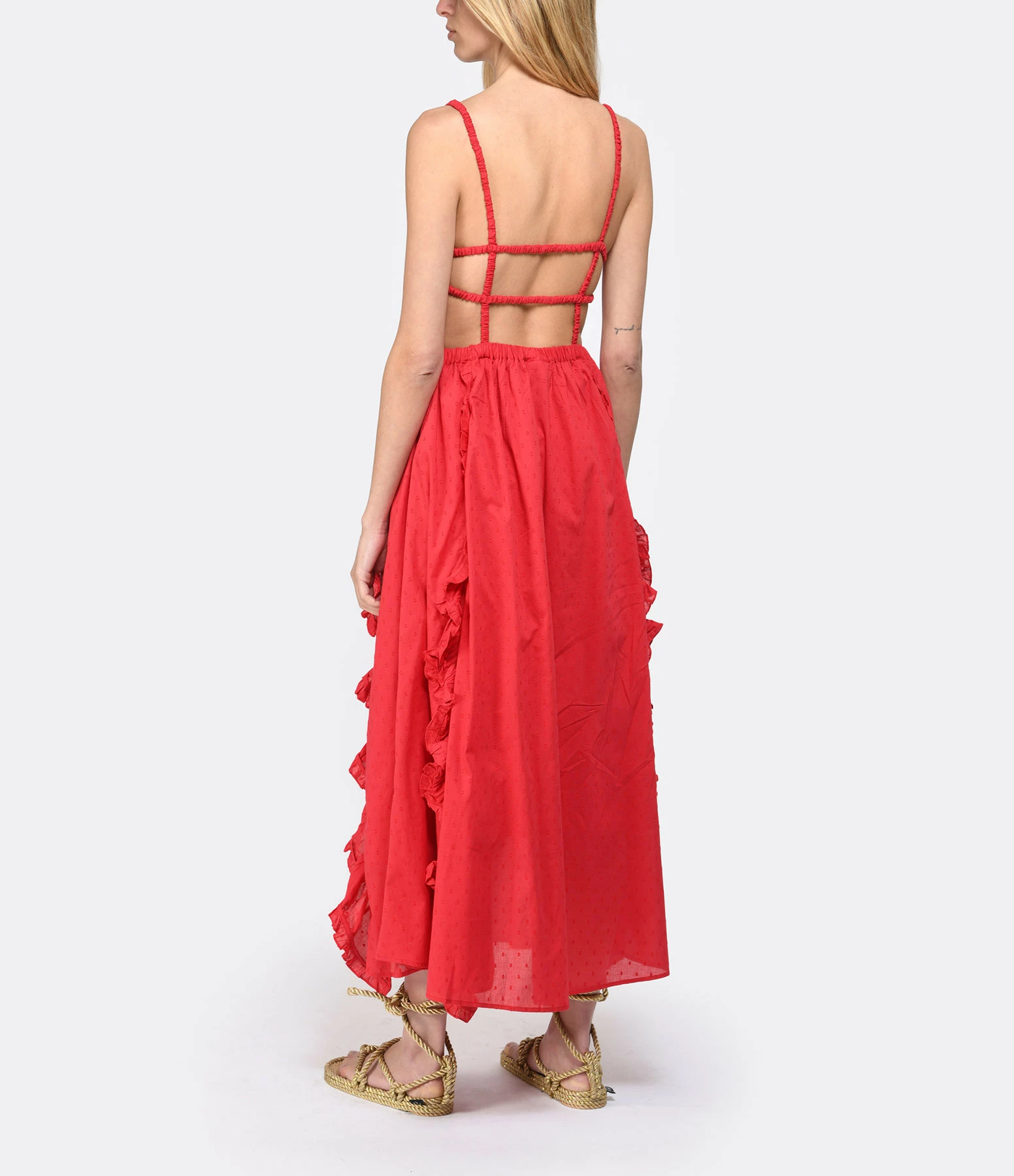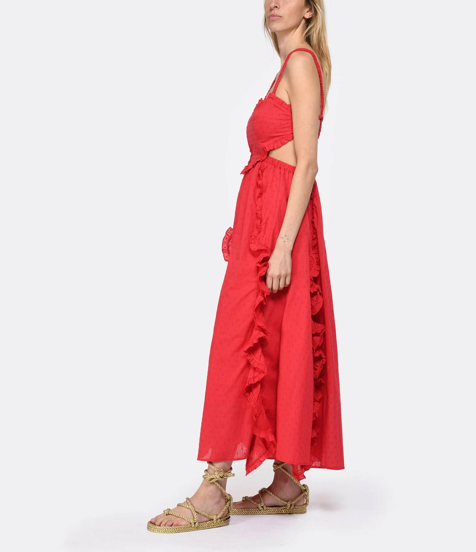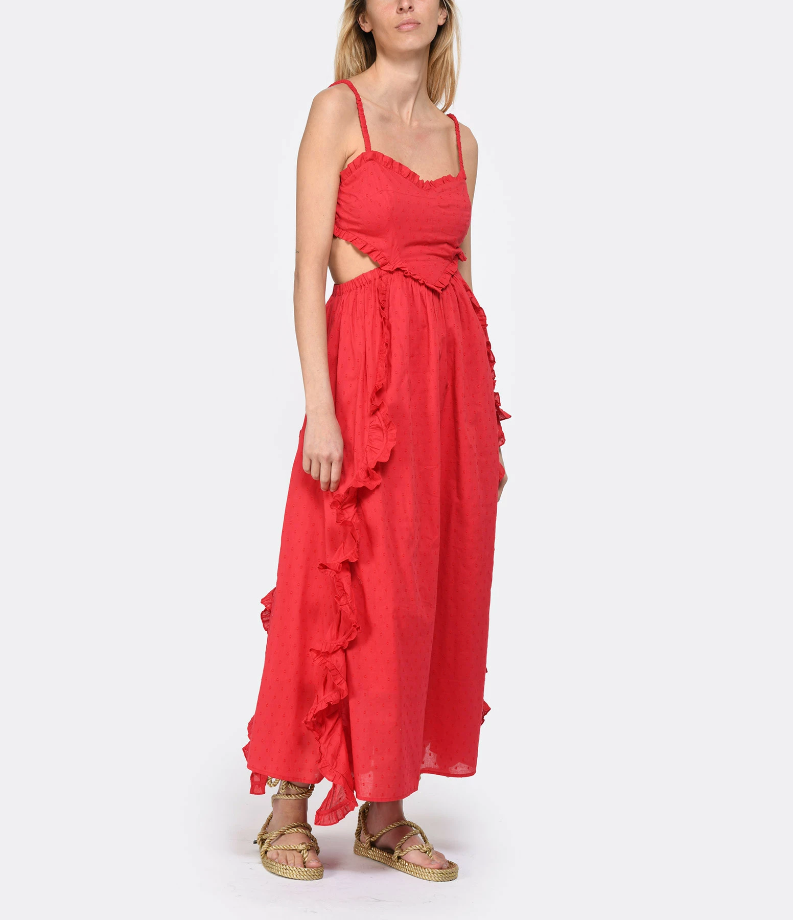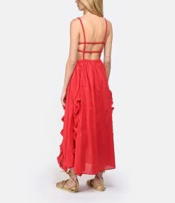Farm Rio Robe Maxi Cœur Coton Rouge