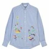 Chemise fluide en coton violet. Manches longues avec poignets resserrés par boutons. Une poche plaquée poitrine. Col chemisier. Fermeture par boutons invisibles sur le devant. Coupe oversize. Base droite.