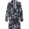 Ganni Robe Chemise Rayures Coton Organique Gris Bleu