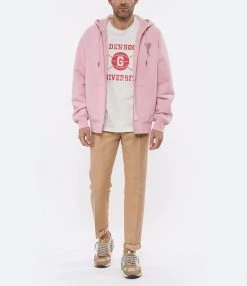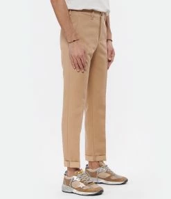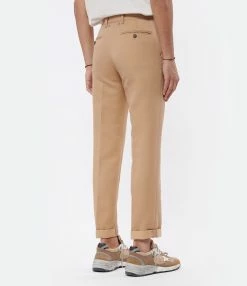 Pantalon chino en coton beige, pour homme. Deux poches italiennes, deux poches passepoilées à l’arrière. Fermeture zippée et boutonnée. Passants pour ceinture. Revers aux chevilles.