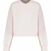 Sweatshirt en coton molletonné rose. Flockage paillette logo “étoile” en argent sur le devant. Flockage paillette inscription “STAR GOLDEN GOOSE” en argent dans le dos. Col rond côtelé. Manches longues avec poignets côtelés. Coupe droite. Base droite côtelée. Non doublé.