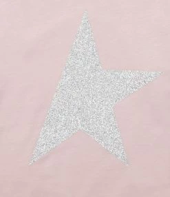 Tee-shirt en coton rose avec flockage étoile argenté pailleté. Inscription “STAR GOLDEN GOOSE” flockée en argenté pailleté dans le dos. Col rond. Manches longues. Coupe droite. Base droite. Non doublé.