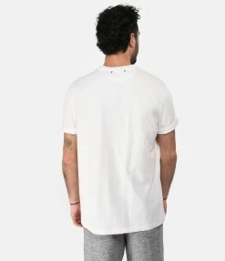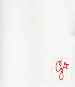 Tee-shirt en coton blanc se démarquant par un patch avec la lettre G brodée en rouge. Double logo étoile en métal argenté dans la nuque. Col rond côtelé. Manches courtes. Coupe droite. Base droite côtelée.