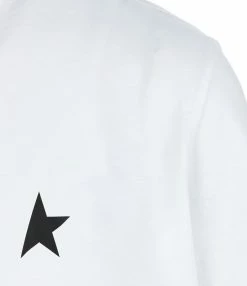 Tee-shirt en coton blanc pour homme avec étoile noire sur la poitrine. Col rond. Manches courtes. Coupe droite. Base droite.
