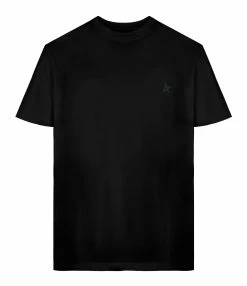 Tee-shirt en coton noir. Logo étoile sérigraphié ton sur ton sur la poitrine. Col rond côtelé. Manches courtes. Coupe droite. Base droite. Non doublé.
