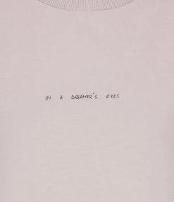 Tee-shirt en coton rose. Inscriptions à l’avant “IN A DREAMER’S EYES”. Col rond. Manches courtes. Coupe droite. Base droite. Effet usé volontairement.