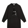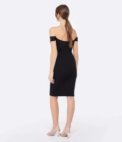 Robe courte noire. Matière texturée. Épaules dénudées. Col légèrement en V. Coupe ajustée.