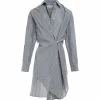 Robe courte en soie noire. Haut à pois transparent. Décolleté plongeant en V. Manches longues. Poignets resserrés par nœuds. Jupe portefeuille fermée par nœud de serrage aux hanches. Jupe doublée. Coupe ample. Base droite.