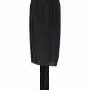 Short court effet jupe en soie noire. Volants sur le bas. Taille élastiquée. Coupe évasée. Base droite.