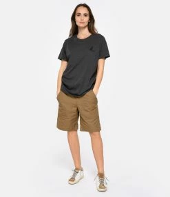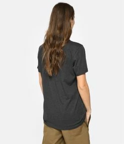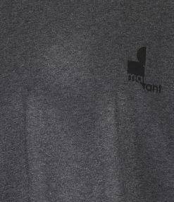 Tee-shirt en coton gris anthracite avec le logo Marant imprimé en noir sur la poitrine. Col rond côtelé. Manches courtes. Coupe droite. Base droite.