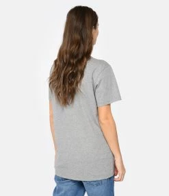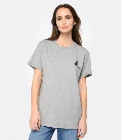 Tee-shirt en coton gris chiné avec le logo Marant imprimé en noir sur la poitrine. Col rond côtelé. Manches courtes. Coupe droite. Base droite.