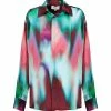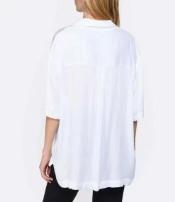 Chemise loose en viscose blanche. Col pyjama. Manches courtes. Fentes latérales. Boutons en nacre.