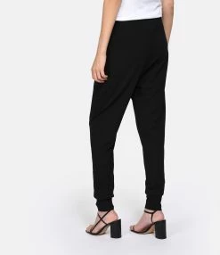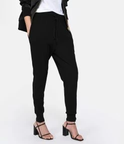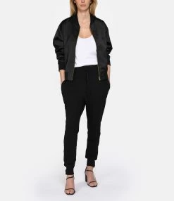 Pantalon de jogging en coton pima noir. Bas de jambes resserrés par bord côtes. Taille élastiquée avec liens de serrage. Coupe slim.