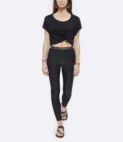 Tee-shirt noir en lyocell pour femme. Col rond. Manches courtes. Base droite avec broderie “JV” ton sur ton sur le côté gauche. Non doublé.
