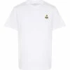 Tee-shirt manches courtes en lyocell blanc. Col en V. Broderie “JV” ton sur ton sur le bas. Base droite, coupe ample. Non doublé.