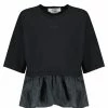 Tee-shirt en coton pima noir. Col V. Manches courtes. Coupe droite. Base droite.