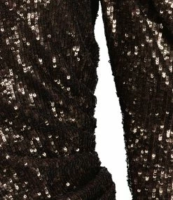 Crop top en satin marron se démarquant par un anneau métallique doré sur le devant. Col chemise avec décolleté en V. Manches longues avec fentes et poignets boutonnés. Pli creux dans le dos. Coupe droite. Longueur raccourcie. Base droite élastiquée et froncée dans le dos avec liens de serrage sur le devant.