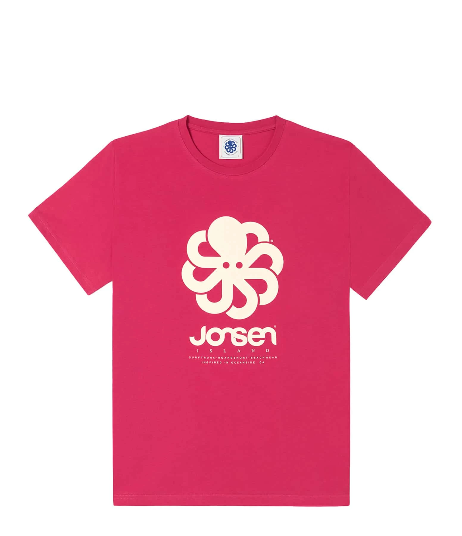Tee-shirt rose à manches courtes. Logo poulpe flocké en beige sur le devant. Col rond. Coupe droite. Base droite.