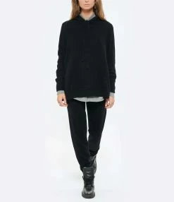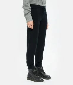 Jogging en cachemire noir. Taille élastiquée et liens de serrage. Deux poches italiennes. Coupe slim.