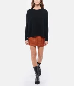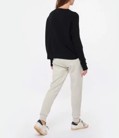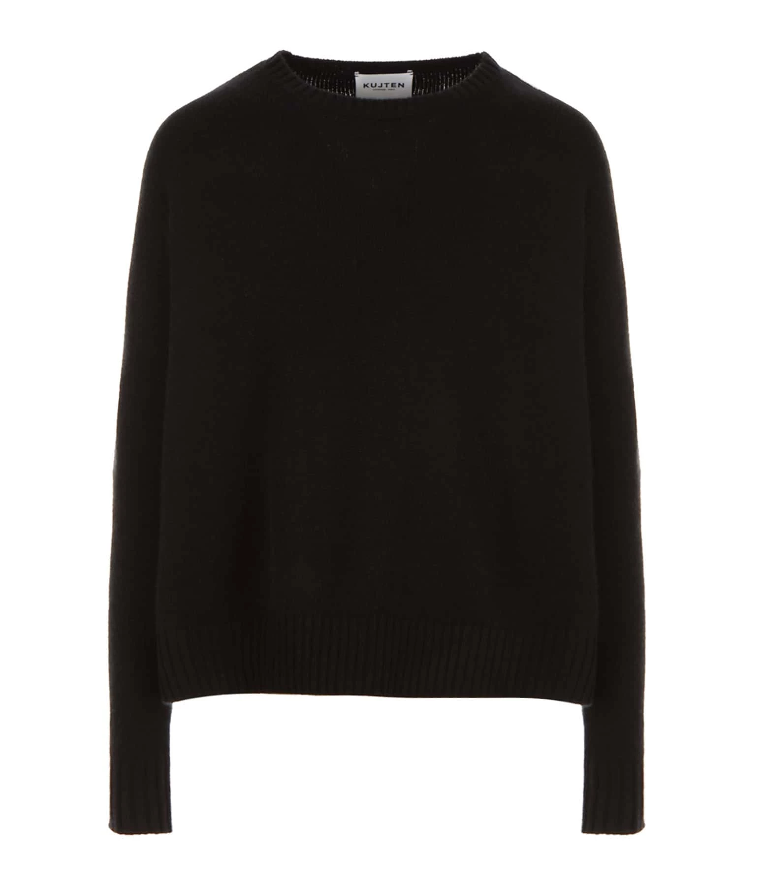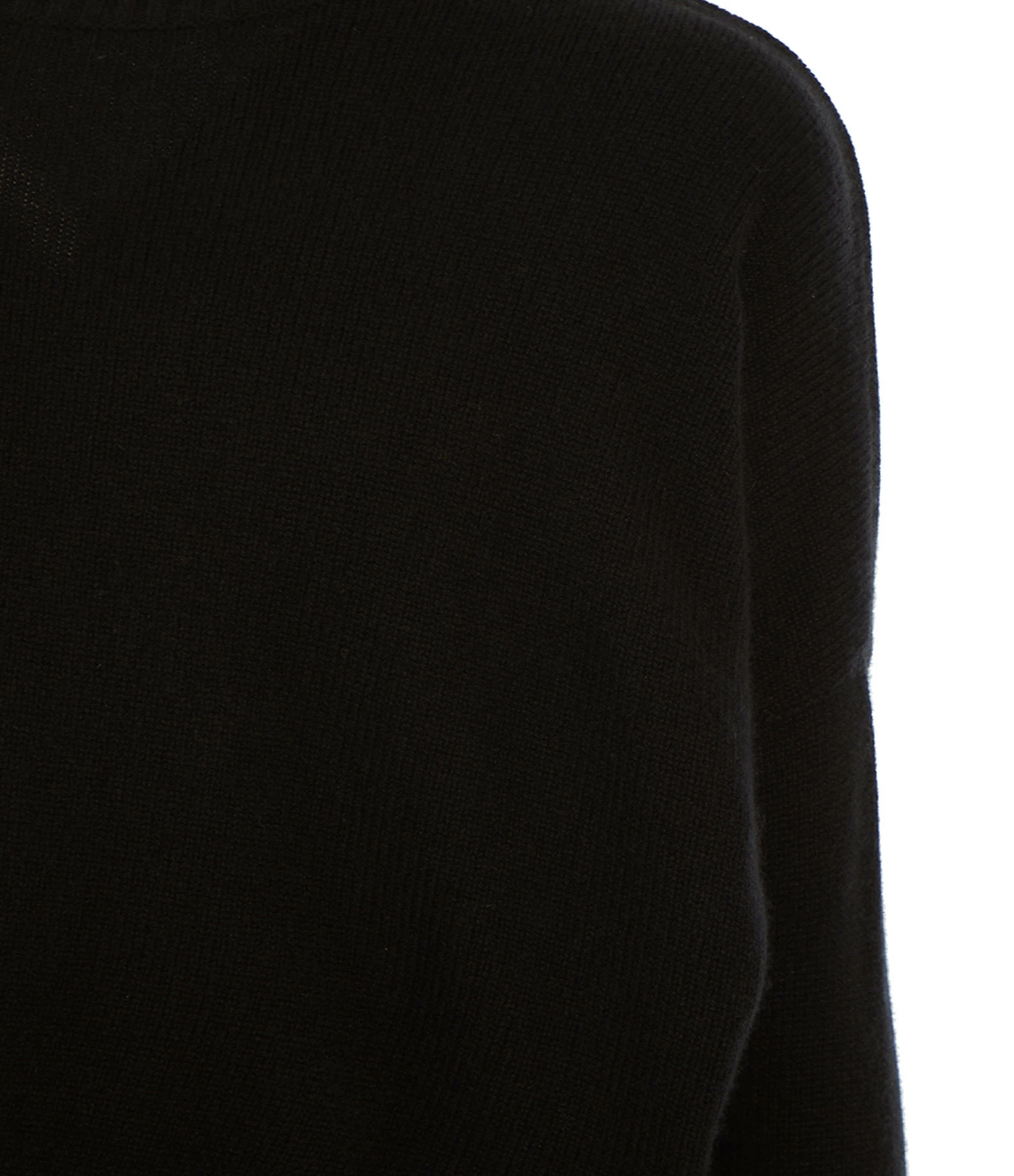 Pull en cachemire noir. Col rond. Manches longues. Base droite. Coupe loose.