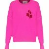 Pull en tricot jersey de cachemire à motif tie and dye dans les tons de rose. Col rond côtelé. Manches longues avec poignets côtelés. Coupe droite. Base arrondie côtelée. Bords francs avec effet déchiré.