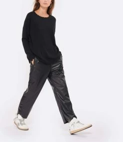 Pull en cachemire noir. Col rond. Manches longues. Bords découpés effet déchirés. Coupe oversize. Base arrondie.